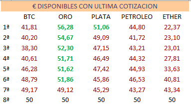 Aquí podemos ver como el oro ha caído y comparando con la anterior compra ya empieza a ser menos rentable. Destacable, cuanto menos, la caída de la plata, dejando de ser rentable completamente, salvo la primera inversión …
